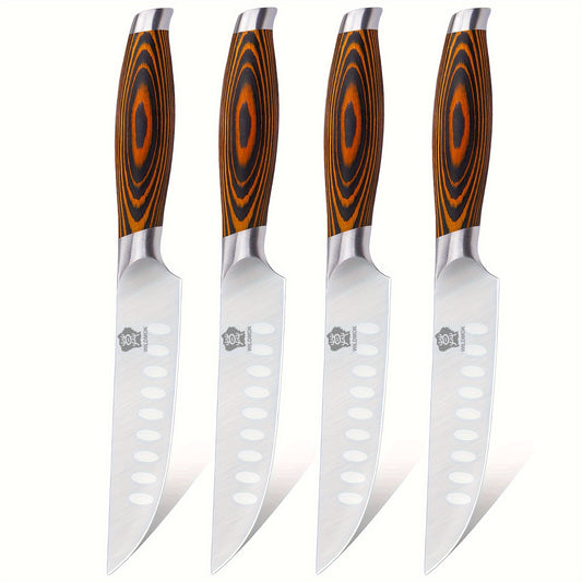 Steakmesser-Set 4-teilig, Deutscher Stahl 5-Zoll-Klinge Steakhouse-Messer-Set Ergonomischer Griff
