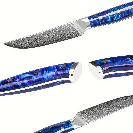 4-teiliges Damast-Steakmesserset, 5-Zoll-Messerset, japanische Steakmesser aus Damaststahl VG10, Premium-Steakmesserset, Full Tang-Harzgriff