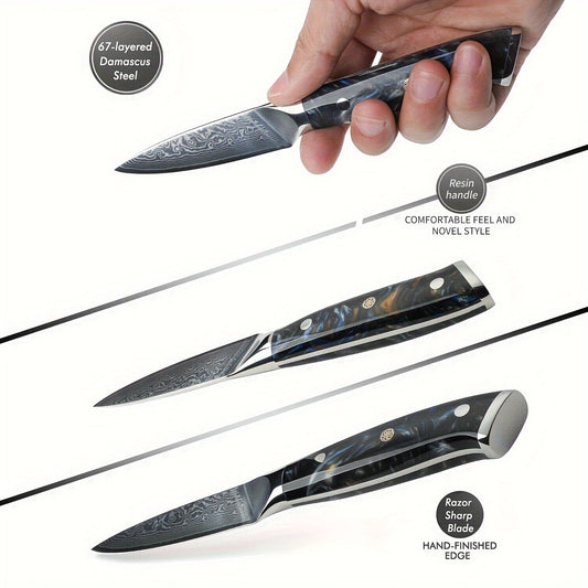 Damaszener Schälmesser 3.5 Zoll, ultrascharfer japanischer VG10-Stahl mit Harzgriff, professionelles Küchenmesser, Sternenschwarz der Xuan-Serie