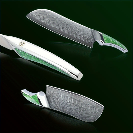 18 cm Santoku Messer, japanisches VG-10 Damaststahl Kochmesser, ultrascharfes Küchenmesser mit durchgehendem Griff aus grünem Harz, LA-S9 Serie