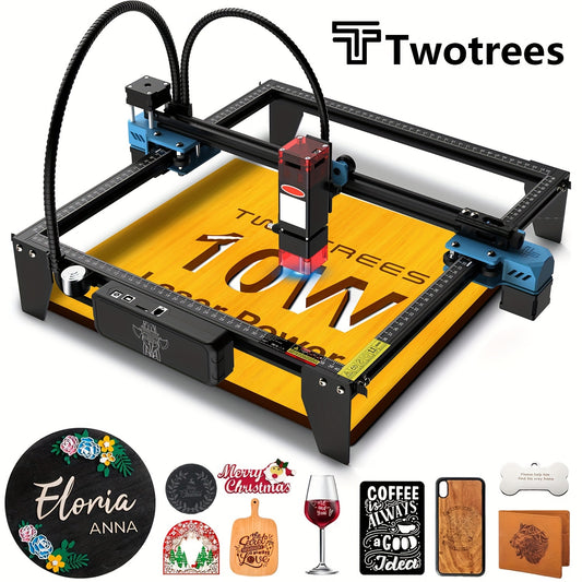 Twotrees Lasergraviermaschine, 10 W Laserleistung, TTS-10 Graviermaschine kann 8 mm Holz und 20 mm Sperrholz schneiden, 0.01 mm hohe Präzision, 400 mm/s Gravurgeschwindigkeit, kompatibel mit einer Vielzahl von Gravursoftware, eingebautes WiFi ESP32 intell