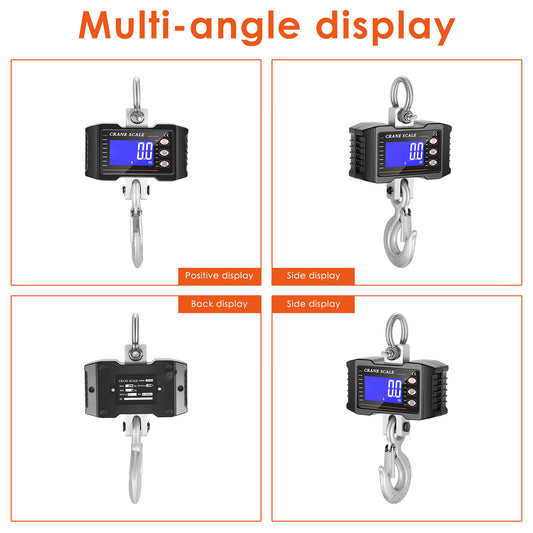 Beslands Kranwaage 1T 1000kg mit LCD Bildschirm, Digitale Hängewaage mit Hochleistungshaken