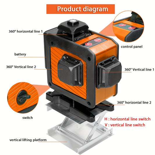 Multifunktions 16 Linien Laser Wasserwaage, 3° Selbstnivelliergerät, wiederaufladbare Lithium Batterie, Nivellierwerkzeug, Omnidirektional, Boden, Wand, Aufkleber, Wasserdicht, Heimwerker Werkzeugset