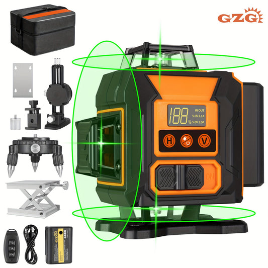 GZG 4x360 Laser-Nivelliergerät Selbstnivellierend 16 Linien Grüner Strahl Professioneller 4D-Kreuzlinienlaser mit Impulsmodus, USB-wiederaufladbares Kunststoffkonstruktionstool, ≤36V Betriebsspannung, 0,4-1 mW Leistung, LCD-Bildschirm Batterie, Fernbedien