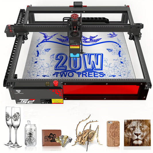 Two Trees TS2 Lasergravierer, 20 W hochpräzise Graviermaschine mit 0.08 mm Spot-Technologie, bis zu 1000 DPI Auflösung, Riemenspannung und Stahlrad-Schienen-Design für 0.01 mm Genauigkeit, 20000 mm/min Max. Geschwindigkeit, kompatibel mit LaserGRBL- und L