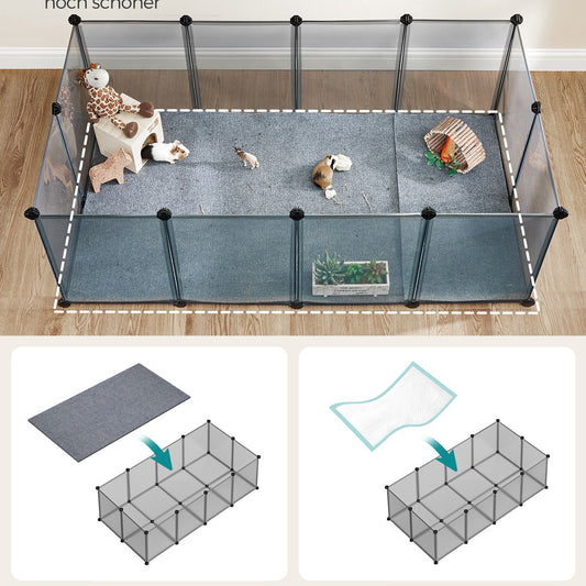 SONGMICS Freigehege mit Bodenplatten, Laufstall, Meerschweinchen Gehege, aus Kunststoff, Gehege für Hamster, Kaninchen, Igel, 143 x 73 x 46 cm