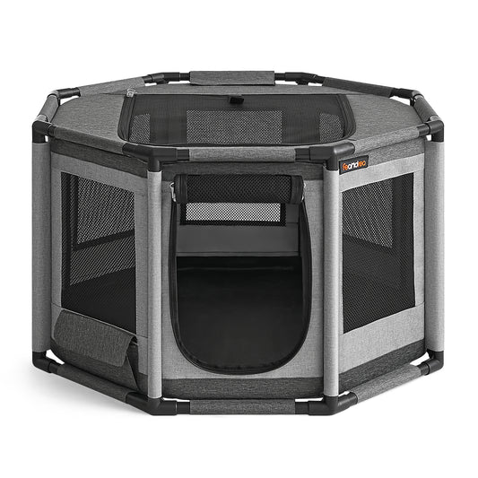 Feandrea Welpenauslauf Oxford-Gewebe, Welpenlaufstall achteckig, Hundekäfig M, Rahmen aus PVC-Rohren, atmungsaktives Netz, mit Seitentasche