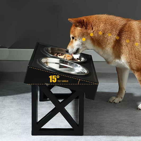 Erhöhte Hundenäpfe mit Edelstahlschalen, Anti-Kipp-Ständer-Futterspender für kleine bis große Hunde, erhöhte Haustierfutter- und Wasserstation mit Kunststoffständer - 1 Ständer + 2 Schalen