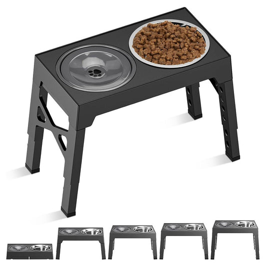 Hundenapf Erhöht Mit 5 Einstellbaren Höhen, 2 in 1 Erhöhter Futternapf Hund Mit hundenapf Edelstahl und wassernapf für Hunde Anti schwapp, Geeignet für große und mittelgroße Welpen