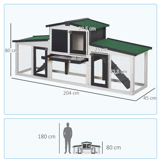 PawHut Kleintierstall Kleintierkäfig Zwergkaninchenstall mit Freigehege und Asphaltdach Doppelstöckiger Meerschweinchenstall Tannenholz Dunkelgrau+Weiß 204 x 45 x 80 cm