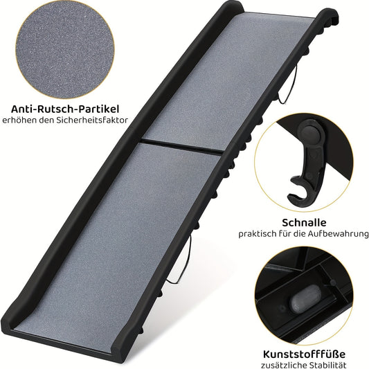 Faltbare Hunderampe, bis 90 kg, 156x40 cm, für große und kleine Tiere, Schwarz, Hundetreppe, rutschfeste Hundeanhängerrampe für SUV, Haustier-Kofferraumrampe, leicht, stabil