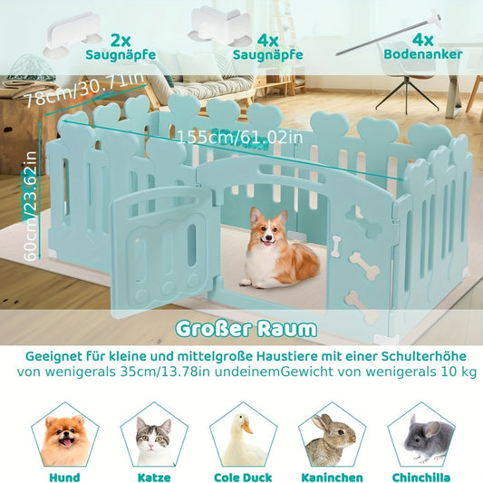 Welpenauslauf 60cm Hoch, Welpengehege Elemente, Kunststoff Welpenauslauf, Faltbares Hundegitter, Wetterfester Hundezaun Mit Tür, Inkl. Saugnäpfe & Bodenanker, Hundekäfig Für Haus Und Garten