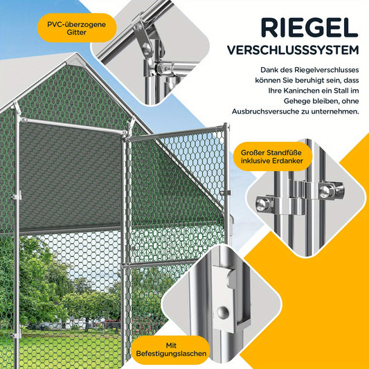 STER Hühnerstall, Hühnerstall Metall Spielplatz im Freien, Hühnerkäfig Kleintierstall Voliere mit Dachplane, Käfig für Hühner Geflügel Kleintiere, Verzinkter Stahl Kleintierstall Hühnerhaus Dach Geflügelstall, Stabiler Stahlrahmen, 3x8x2m