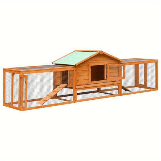 2-stöckiger Kaninchenstall & Kleintiergehege mit Volierendraht Kleintierhaus aus massivem Kiefernholz & Tannenholz Außengehege 122x27,4,3