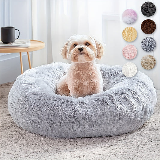 Beruhigendes Hund- Und Katzenbett, Donut-Kuschler, Wärmendes Gemütliches Rundes Bett, Flauschiges Kunstfell-Plüschkissenbett Für Kleine, Mittlere Und Große Hunde Und Katzen (40,64 Cm / 50,8 Cm / 60,96 Cm / 71,12 Cm / 78,74 Cm / 99,06 Cm)