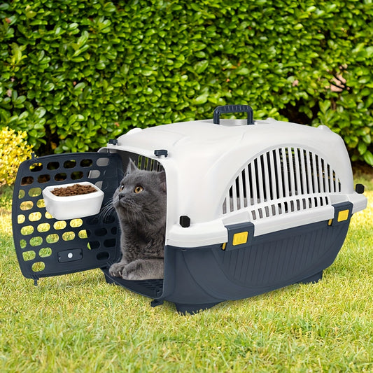 Aufun Kunststoff-Haustiertragetasche, Haustier-Tragebox, Hundetransportbox mit Fronttür oben, Kissen und Napf inklusive, für kleine Hunde und Katzen, 61 x 37 x 37 cm