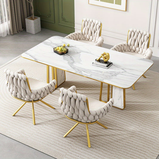 Samt-Esszimmerstuhl, 4er-Set, Sessel, einzelner luxuriöser Wohn- und Schlafzimmer-Drehstuhl, Freizeit-Drehstuhl mit vier Stützbeinen aus Metall, beige.