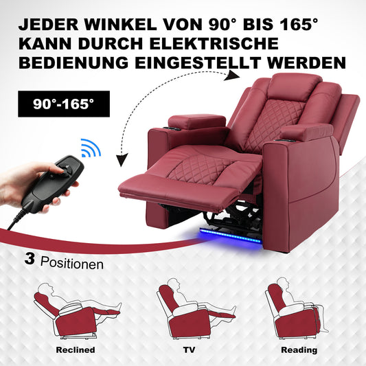 Relaxsessel elektrischer Fernsehsessel Ruhesessel Liegesessel mit LED, Liege-Funktion Polstersessel Kunstleder verstellbar Einzelliegesessel Wohnzimmer Schlafzimmer Heimkino
