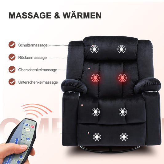 Relaxsessel Massagesessel Fernsehsessel mit Liegefunktion Vibration Heizung, Dicke Rückenlehne und Armlehnen, mit Wippfunktion, 360drehbar