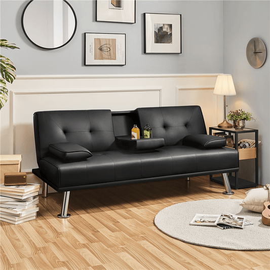 Yaheetech 3er-Sofa Klappbares Schlafsofa mit Bettfunktion Couch mit Tassenhalter Gästebett, Rückenlehne neigbar 105/140/180, 167 x 81,5 x 75 cm, 350 KG belastbar, Kunstleder
