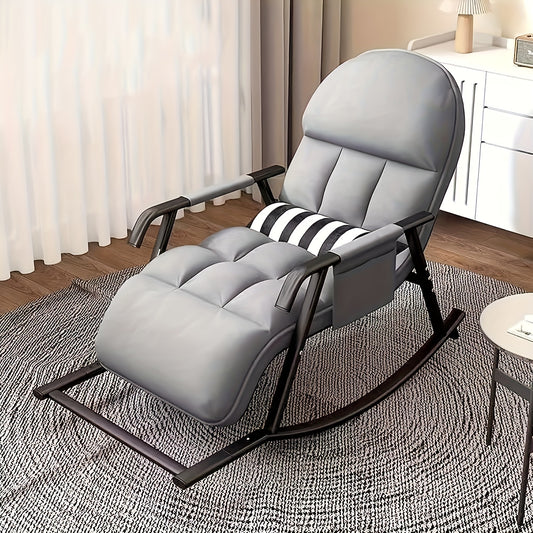 Wohnzimmerstuhl mit Schaukelfunktion und Liegemöglichkeit, Schaukelstuhl mit praktischer Seitentasche, Schaukelsessel mit verstellbarer Fußstütze für gemütliche Stunden im Wohn- oder Schlafzimmer
