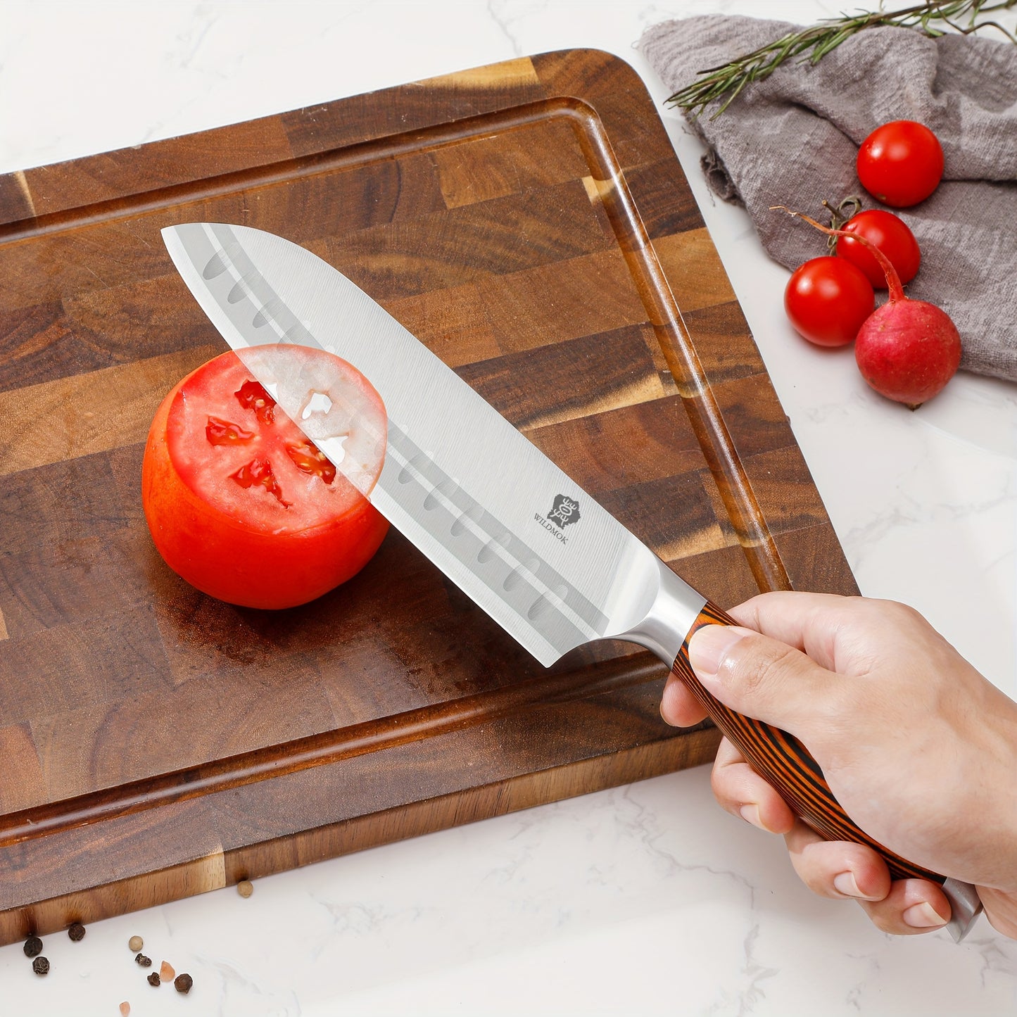 17.78 cm japanisches Santoku-Kochmesser, hochwertige deutsche Stahl-Ultra-Scharfe Klinge, professionelle handgeschmiedete Kochmesser mit ergonomischem Pakkawood-Griff