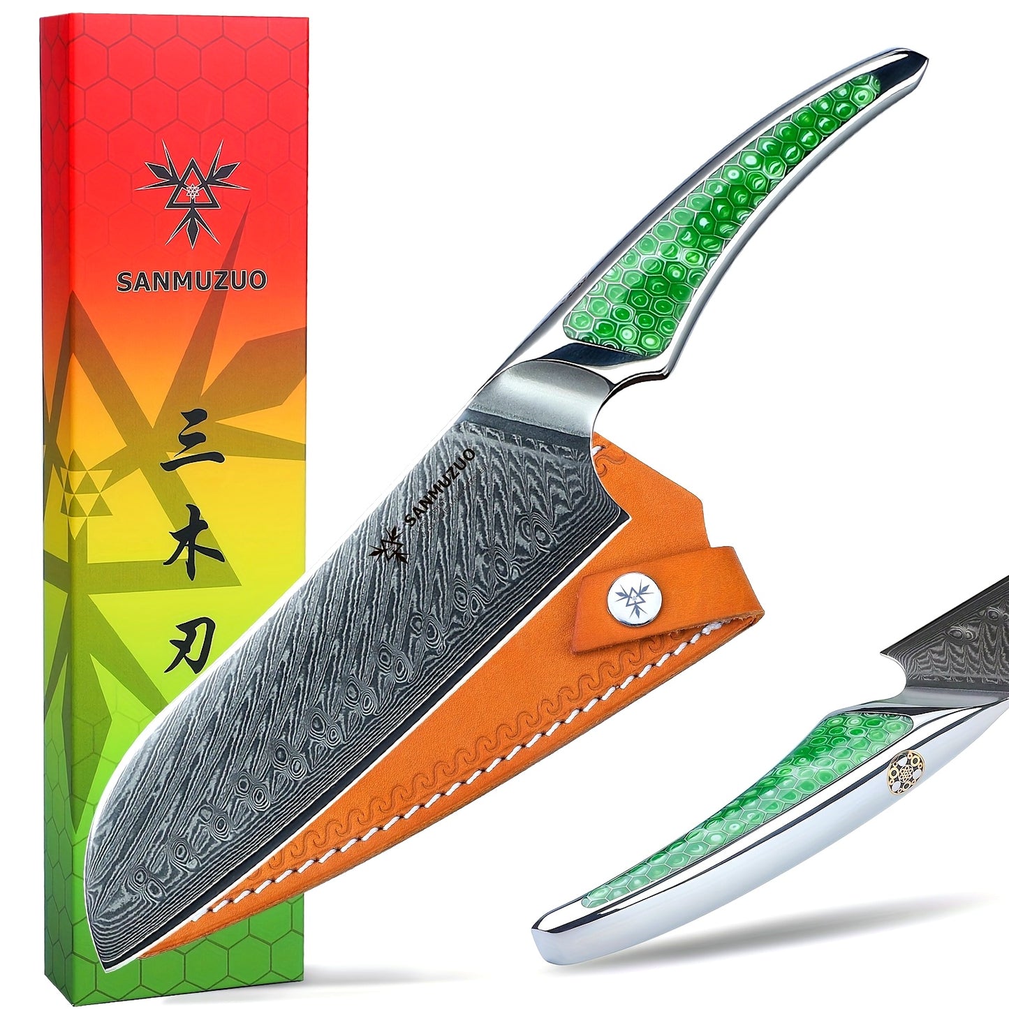 18 cm Santoku Messer, japanisches VG-10 Damaststahl Kochmesser, ultrascharfes Küchenmesser mit durchgehendem Griff aus grünem Harz, LA-S9 Serie