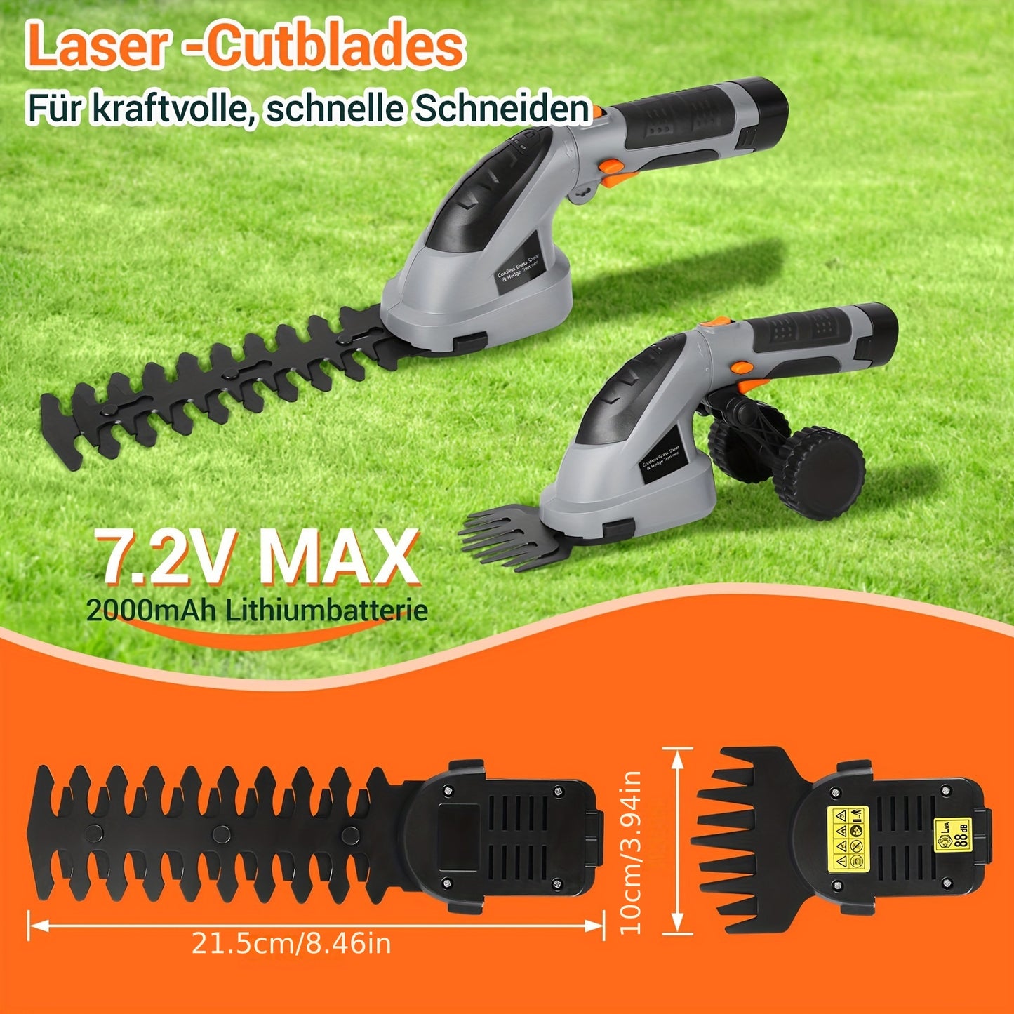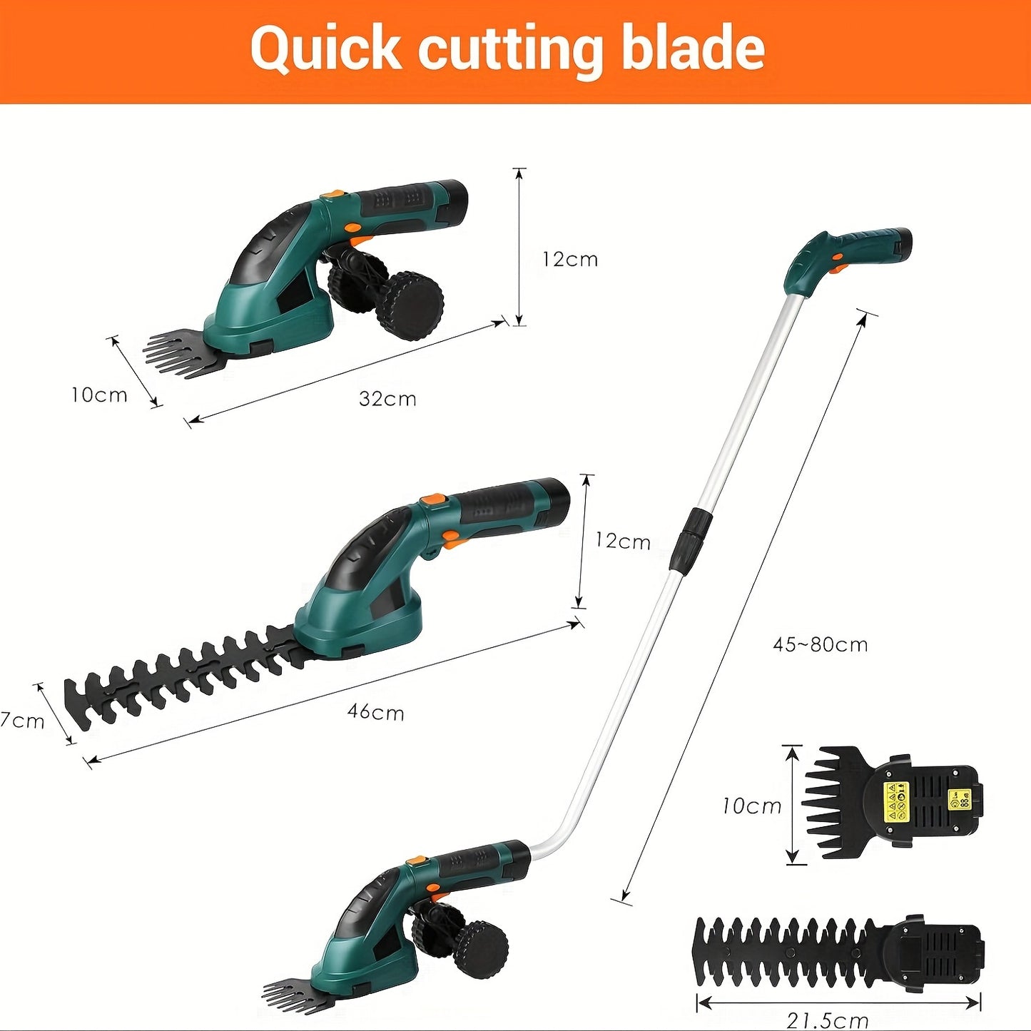 Akku-Grasschere 7.2 V 2000 mAh 2-in-1 Handheckenschere Rasenmäher mit Teleskopstiel Wiederaufladbarer Akku und Ladegerät für Garten, Rasen, Sträucher und Beschneiden