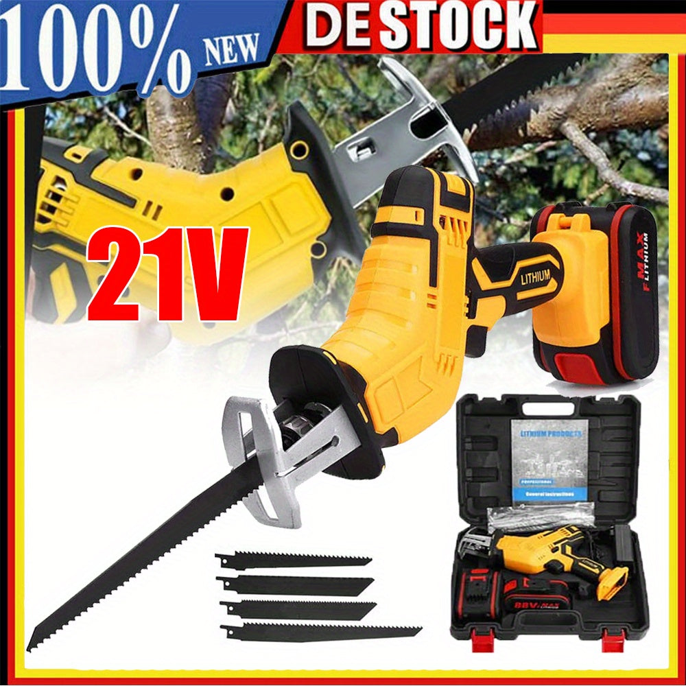Elektrische Säbelsäge, 4 Sägeblätter mit 2 wiederaufladbaren Akkus & Schnellladegerät, Akku-Säbelsäge