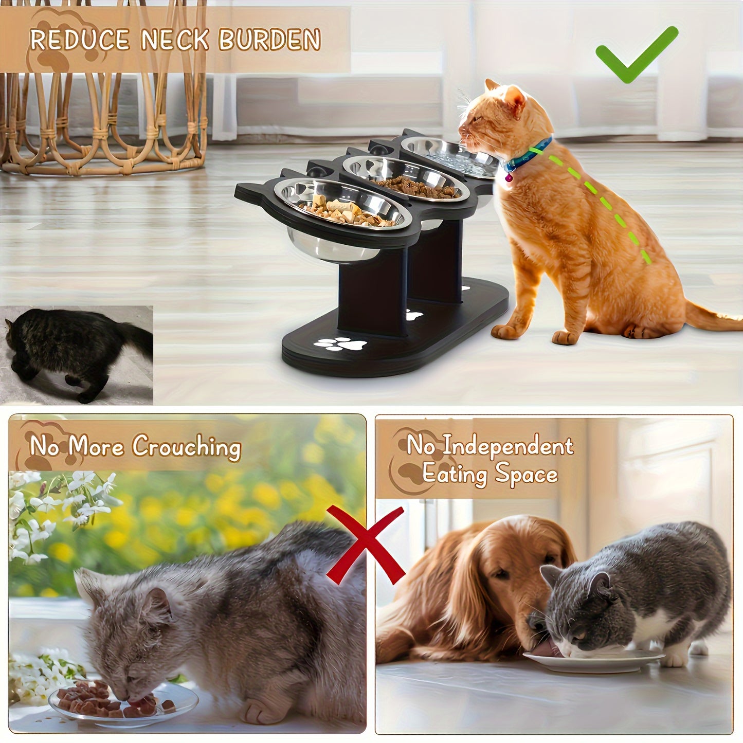 Hochgelegte Katzenfutterschale, 15-Grad-Neigung Katzen- und Welpenfutterschale, Erhöhte Hundeschale, Verstellbare Katzen- und Hundeschale für Futter und Wasser mit 3 Edelstahl-Schalenständern, Haustier-Essentials, Unverzichtbar für eine Gesunde Ernährung,