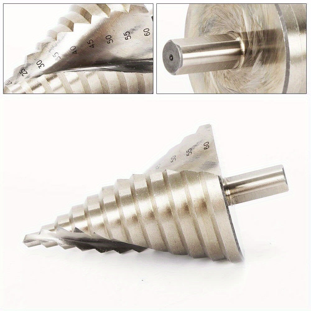 HSS-Stufenbohrer | 6–60 mm, 14 Größen | Schnellarbeitsstahl | HSS-Kegelbohrer für Eisenplatten, PVC-Platten, Dämmplatten usw.