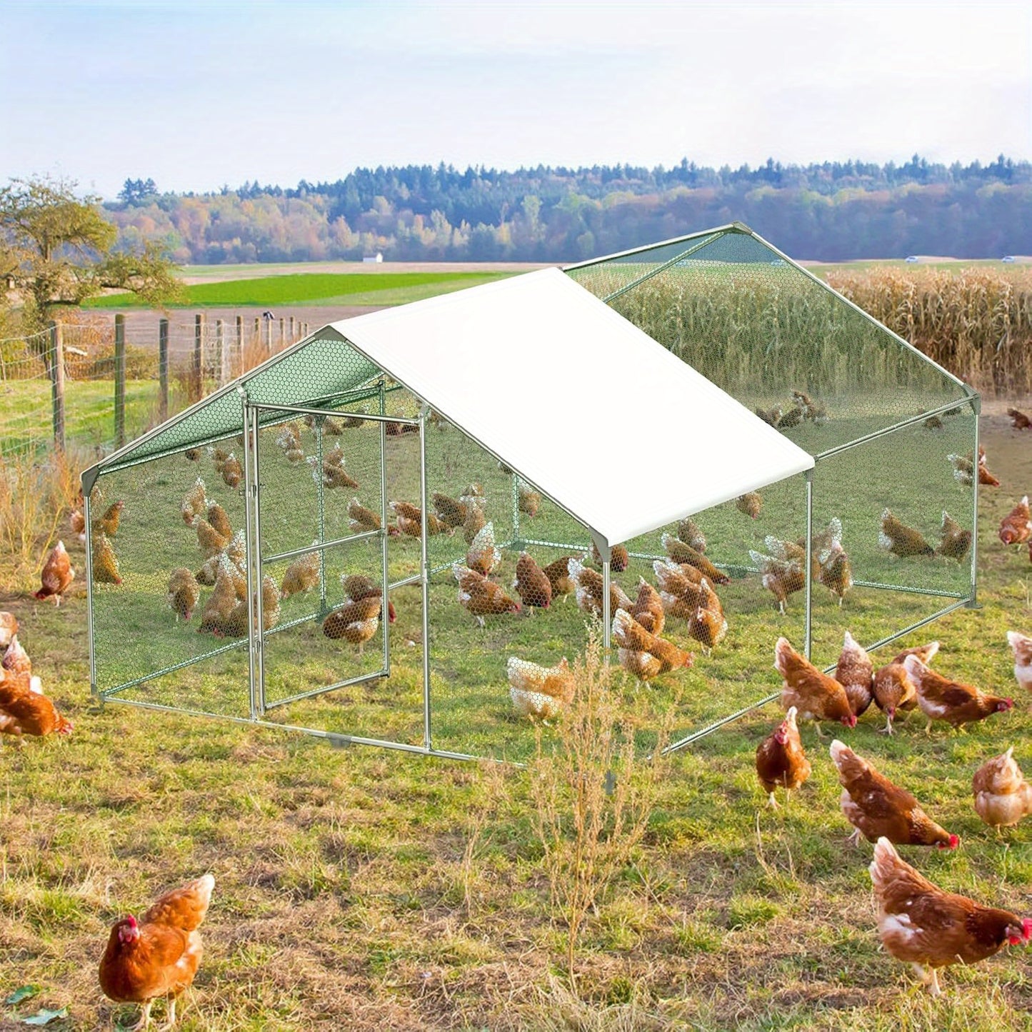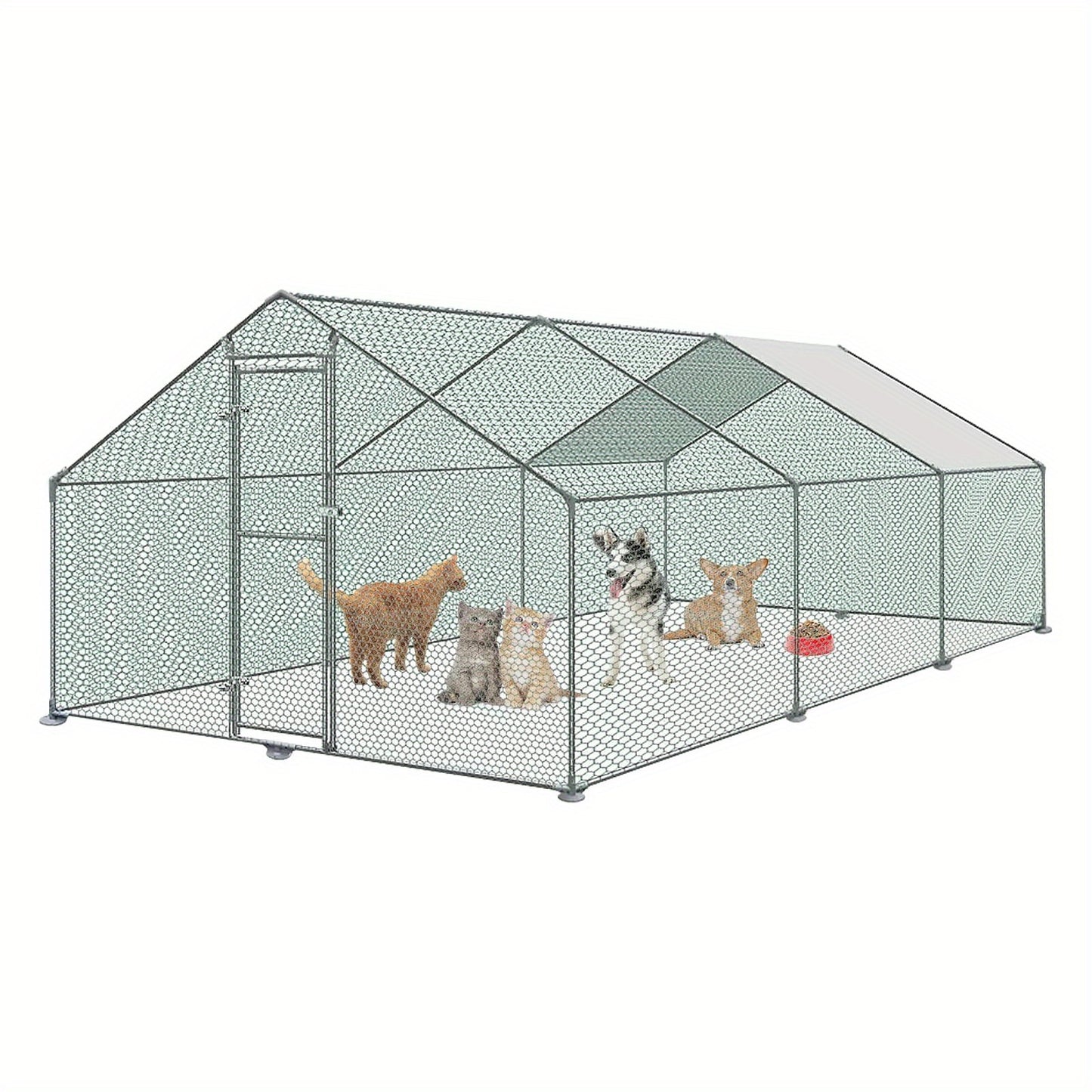 Hühnerkäfig, Außengehege, Stahlrahmen verzinkt mit PE-Sonnenschutzdach und Schloss Hühnerstall Kaninchenstall Geflügelkäfig Kleintiergehege 3x2m/3x4m/3x6m/3x8m