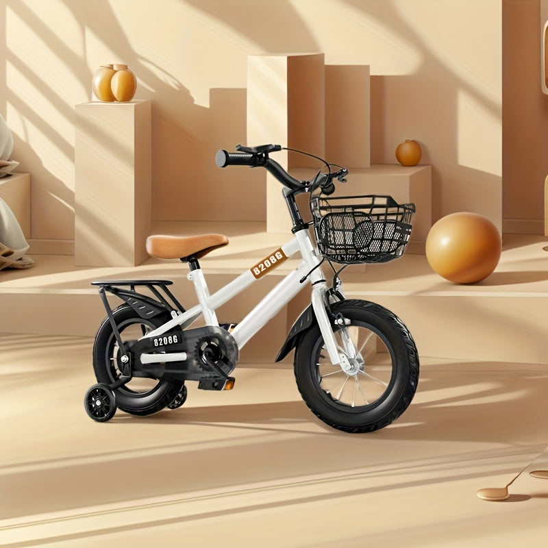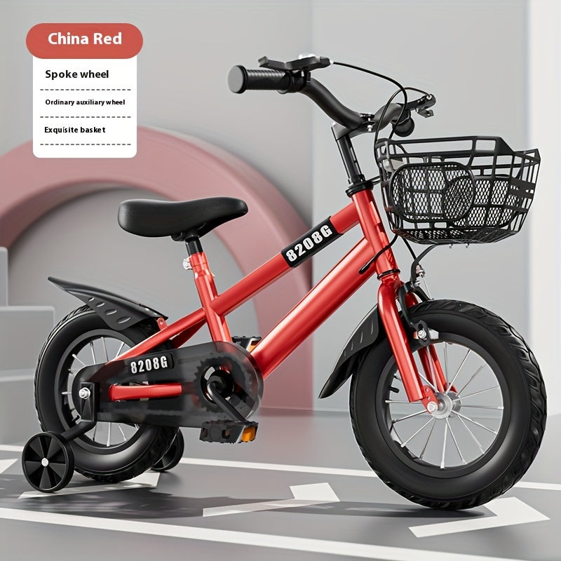 Kinderfahrrad 18 Zoll mit Trainingsschienen, Vorder- & Hinterradbremsen, Verstellbaren Kotflügeln und Korb - Robuster Stahlrahmen in Weiß/Rot