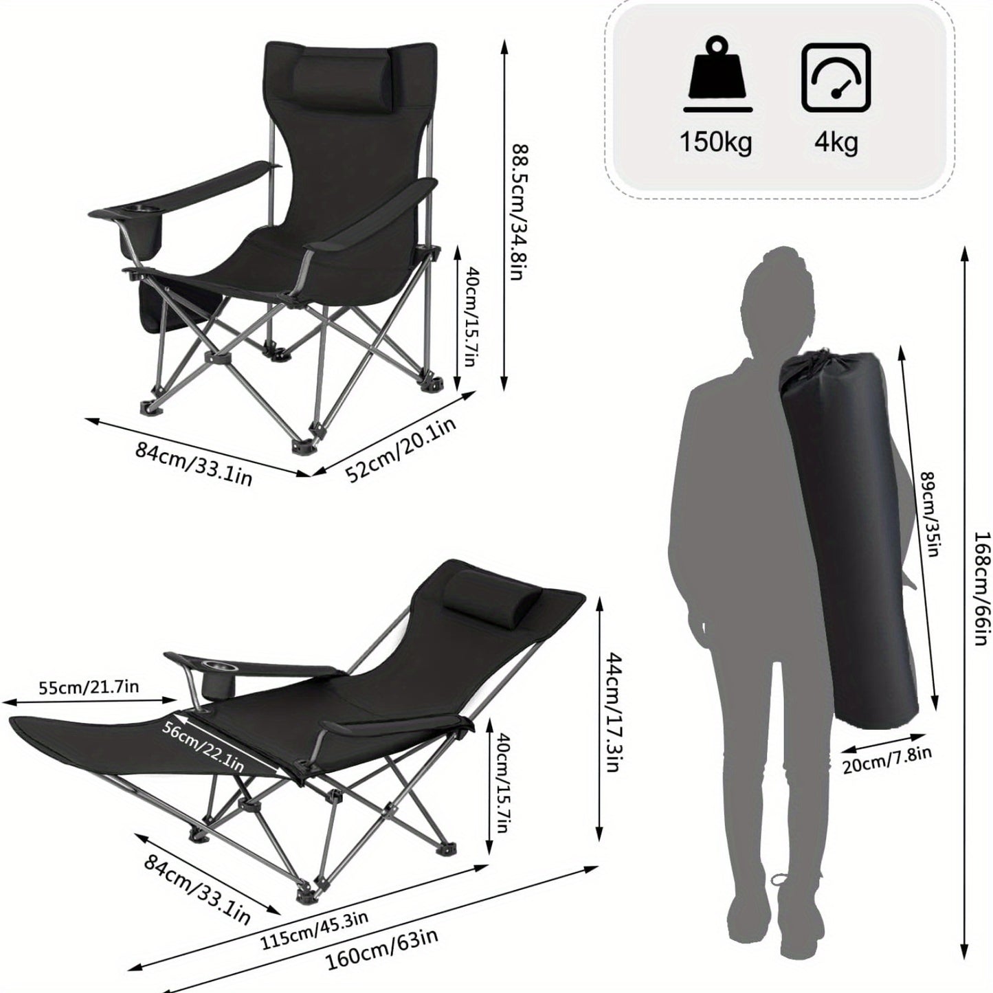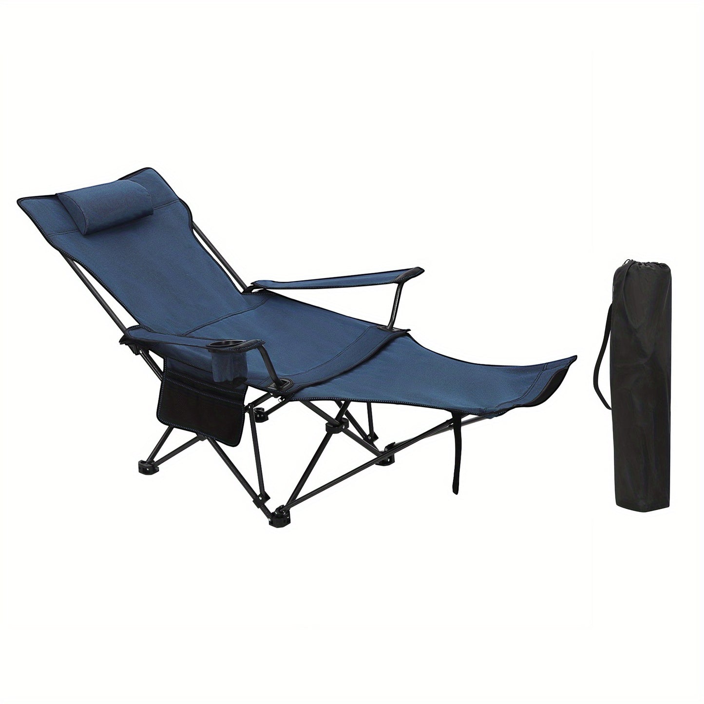 Klappbarer Campingstuhl, leichter Angelstuhl, Liegestuhl mit einziehbarem Fußstütze und abnehmbarem Kopfkissen, Tragetasche, für Outdoor-Aktivitäten, Grau/Schwarz/Grün/Blau