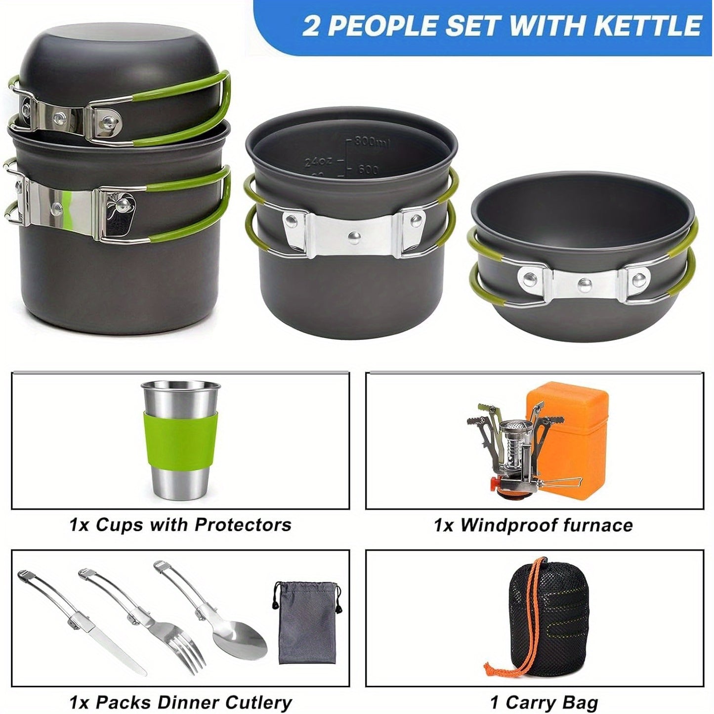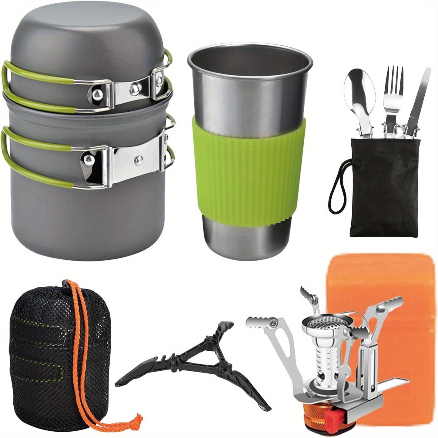 Laspi Camping-Kochset, 9-teiliges Camping-Küchenset, inklusive Campingkocher/Campingtopf/Löffel/Gabel/Messer/Edelstahlbecher/Dreibein