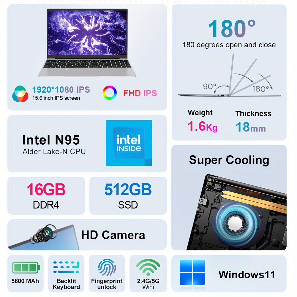 Ninkear N15 AIR Laptop 15.6" IPS 1080P IPS Intel Celeron N95 3.4Ghz 16GB RAM 512GB SSD Gaming Office Windows 11 Notebooks