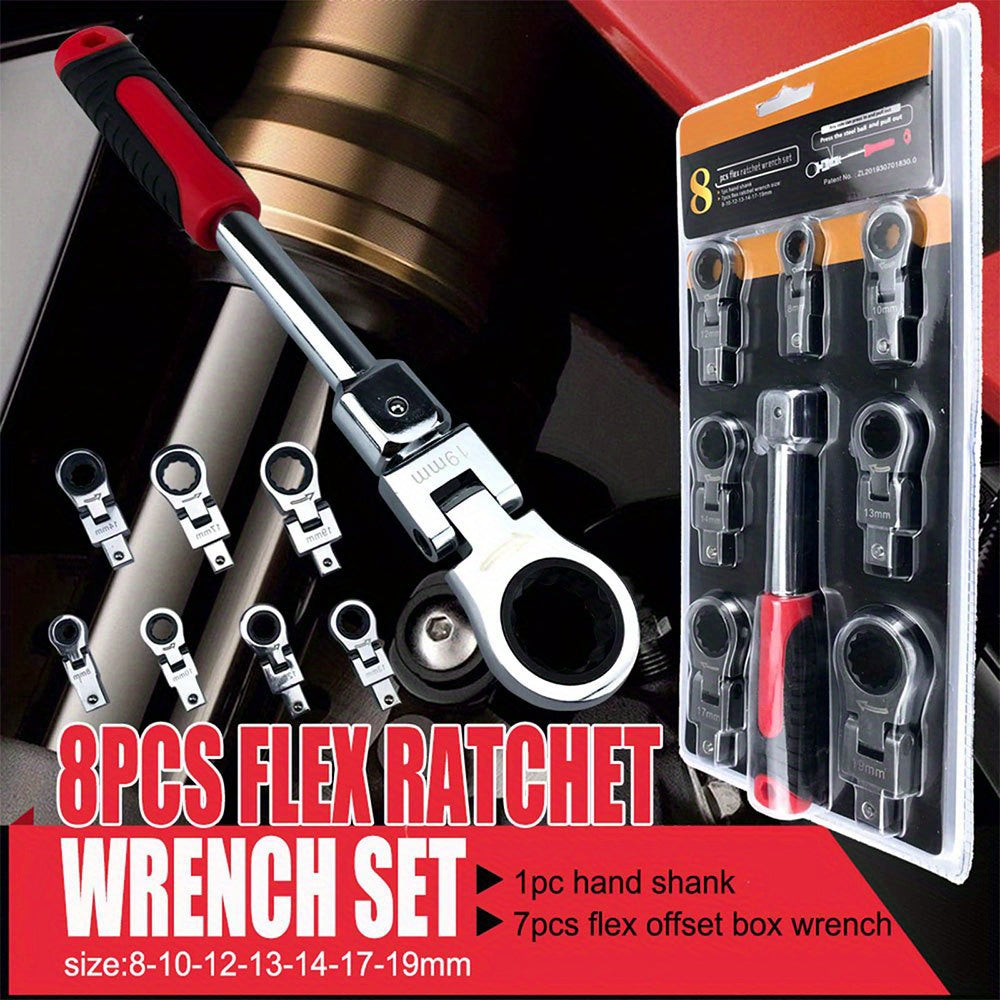 Sehr geehrte Kundin sehr geehrter Kunde, Entdecken Sie unseren hochwertigen 8teiligen Steckschluesselsatz mit Ratschenschluessel und 180 ° Kopf. Gefertigt aus robustem legiertem Stahl eignet sich dieses Werkzeugset optimal für den Einsatz im Auto und Mo