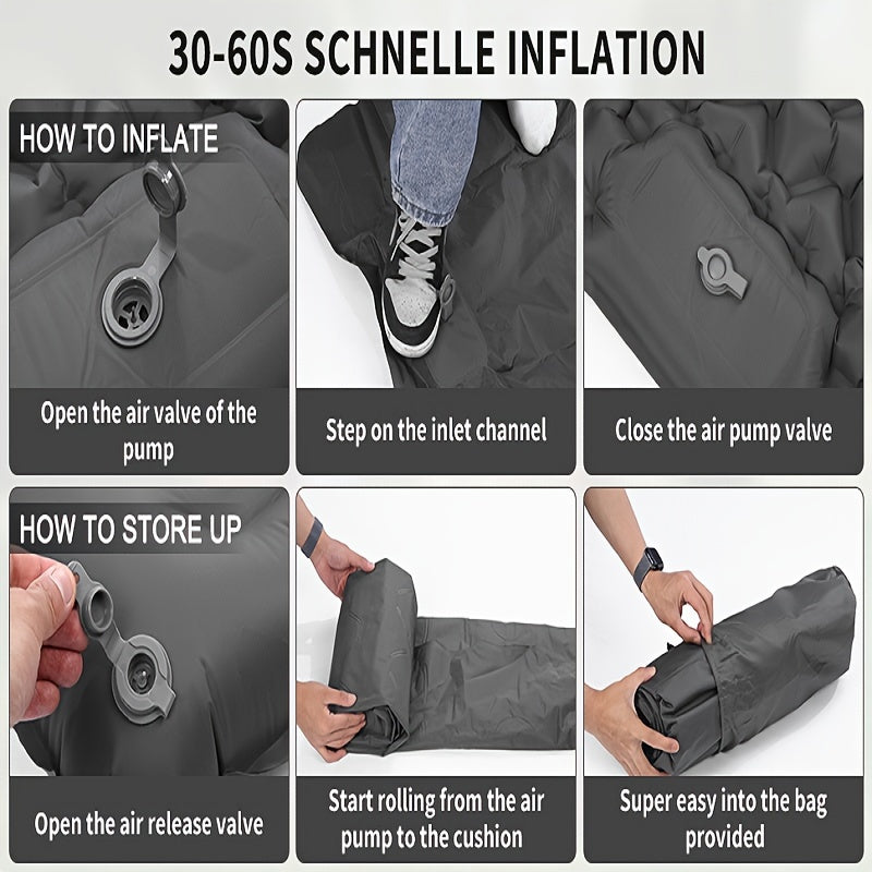 Selbstaufblasende Isomatte, 8-15 cm dick, aufblasbare Luftmatratze Camping, Isomatte Outdoor, Tragbare ultraleichte Isomatte mit Fußpumpe, Campingmatratze, Faltbare Schlafmatte mit Kissen