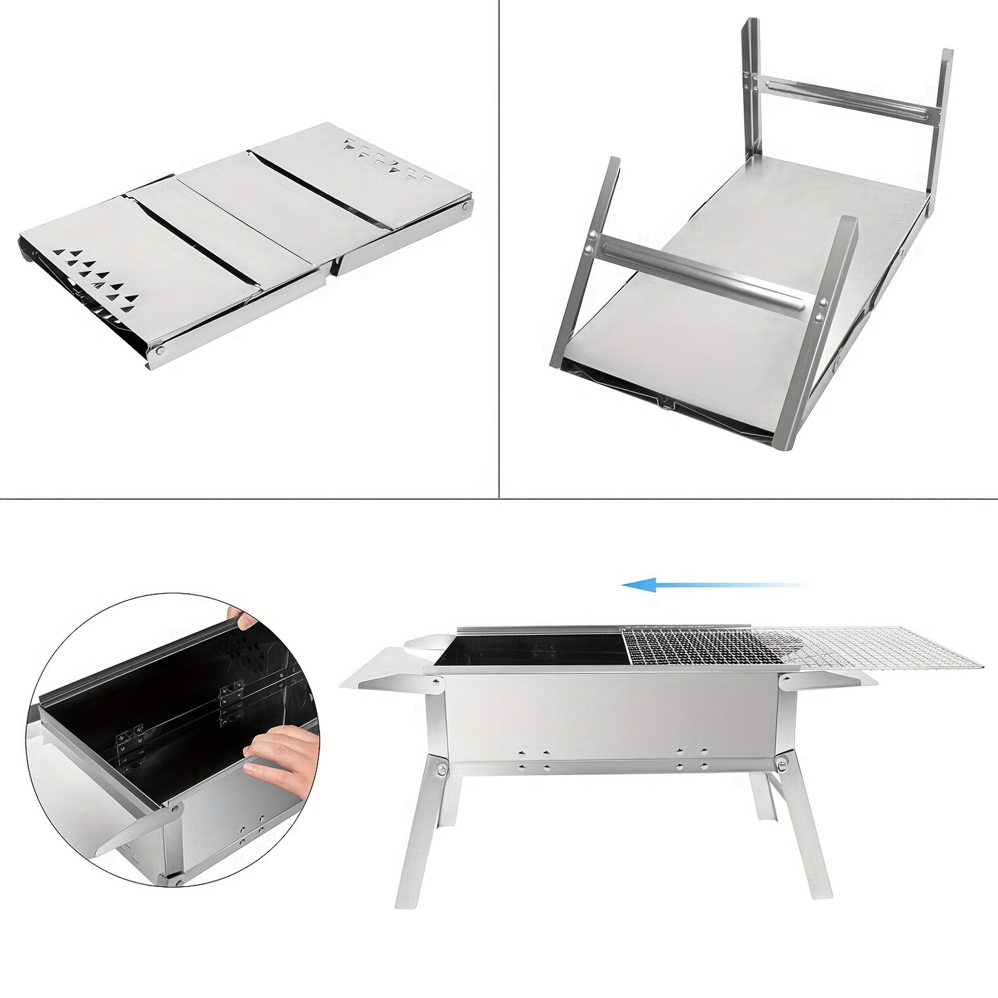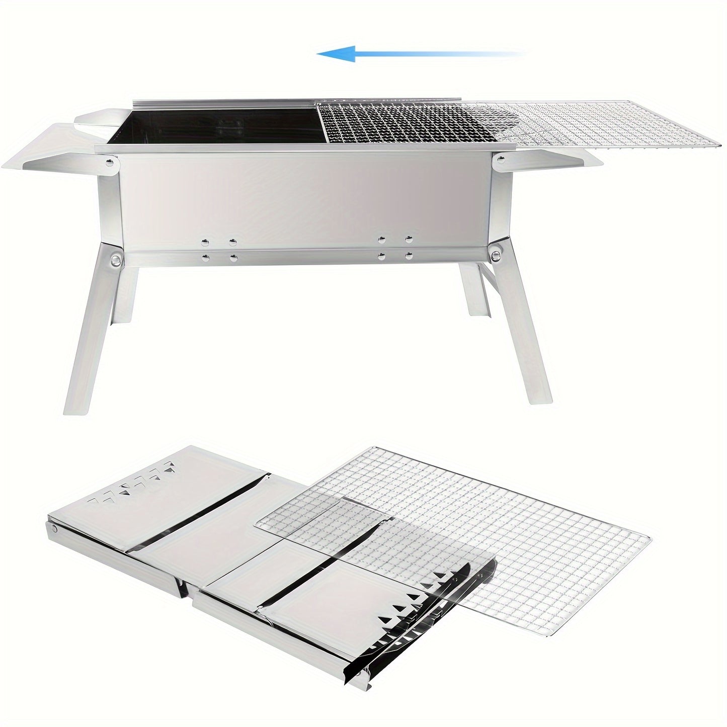 SunJas Klappgrill Edelstahl, Tragbarer Holzkohlegrill, Picknickgrill Camping, Faltbarer BBQ Grill für Outdoor, Reisen, Garten, Wandern, Garten und Angeln