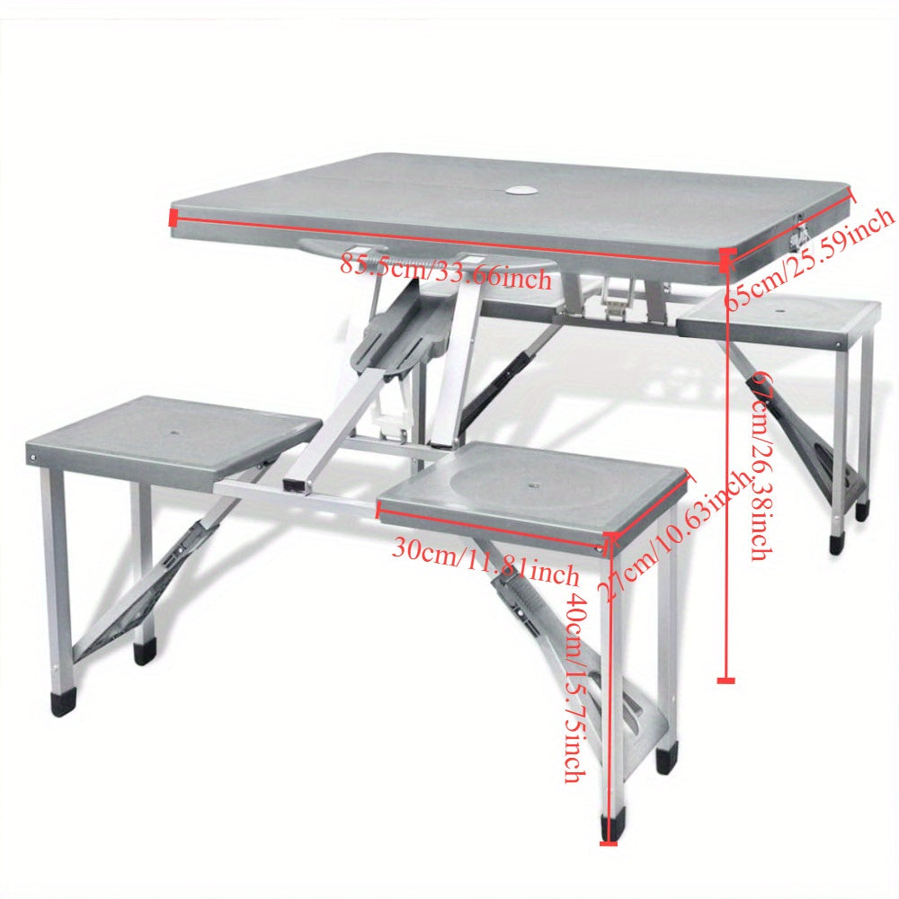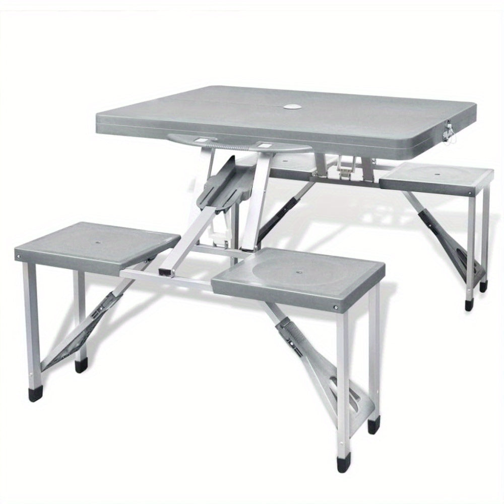Tragbarer Aluminium-Klapp-Campingtisch mit 4 Stühlen - Hellgraues Outdoor-Picknick-Set
