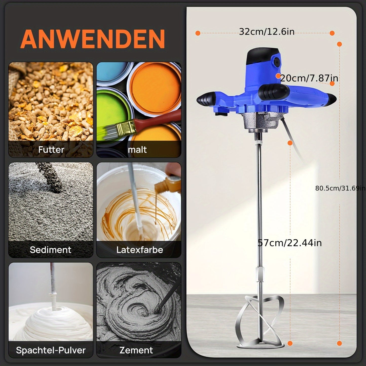 Tragbarer Betonmischer, Elektrischer Handmischer, Tragbarer M14 Zementmischer mit Rührstab, 6-stufige Drehzahlregelung 0-1700 U/min, Zum Mischen von Zement und Farbe