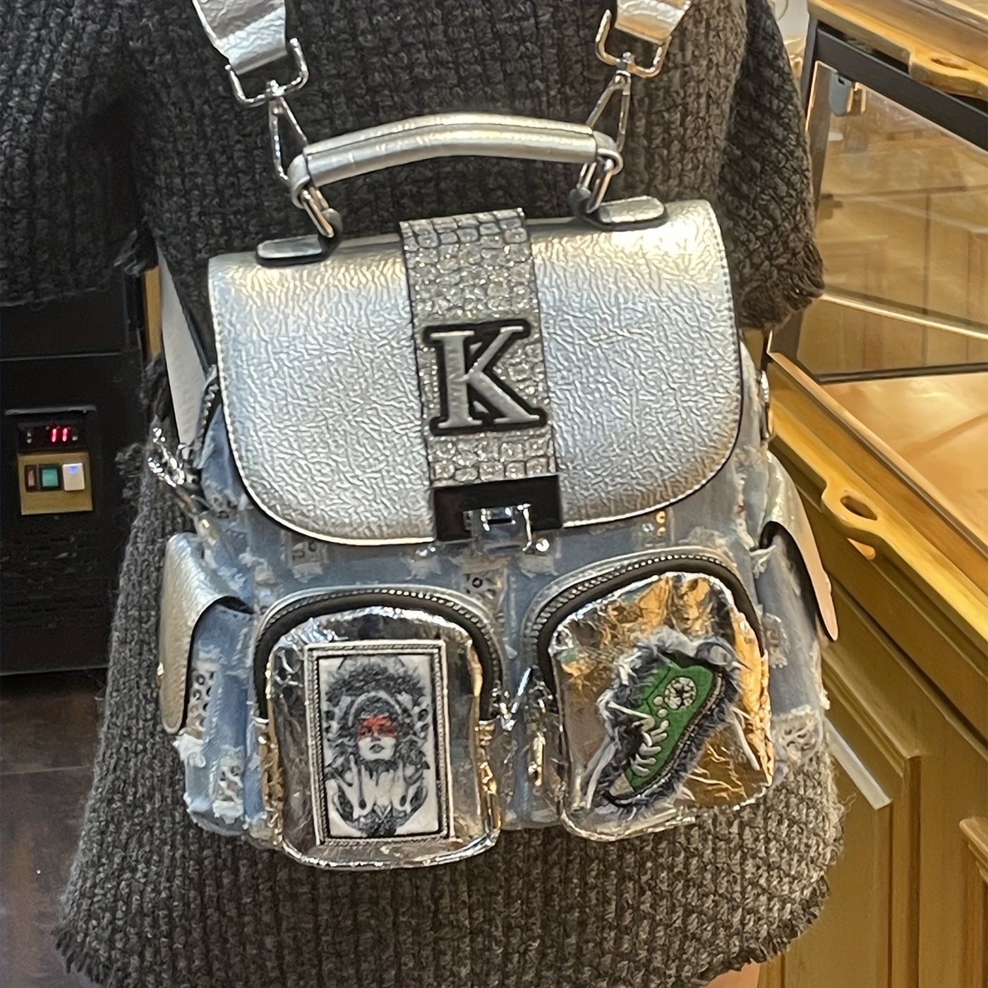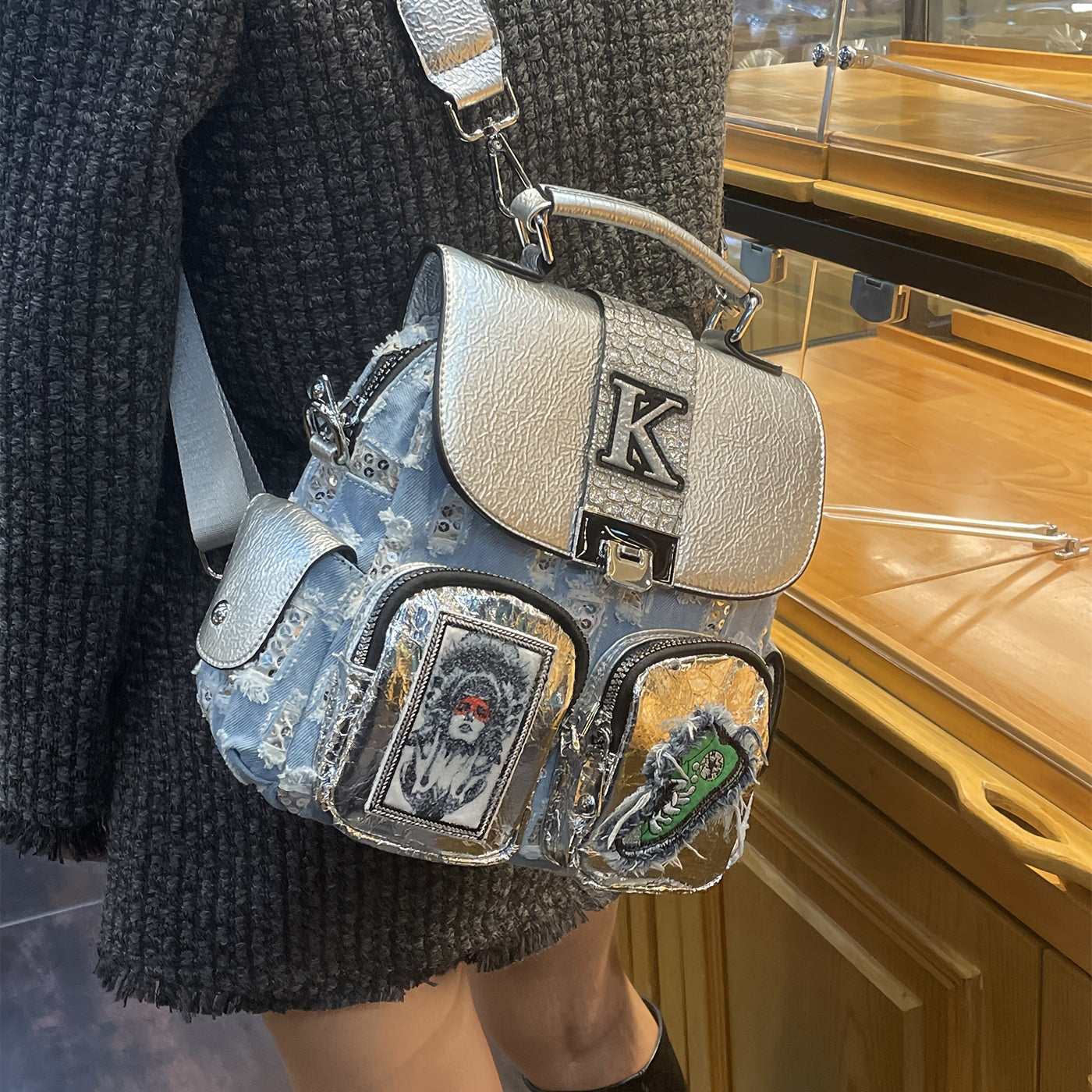 Trendiger Denim-Rucksack - Geräumiges Design mit Stickerei und mehreren Taschen - Vielseitig für Reisen & Alltag