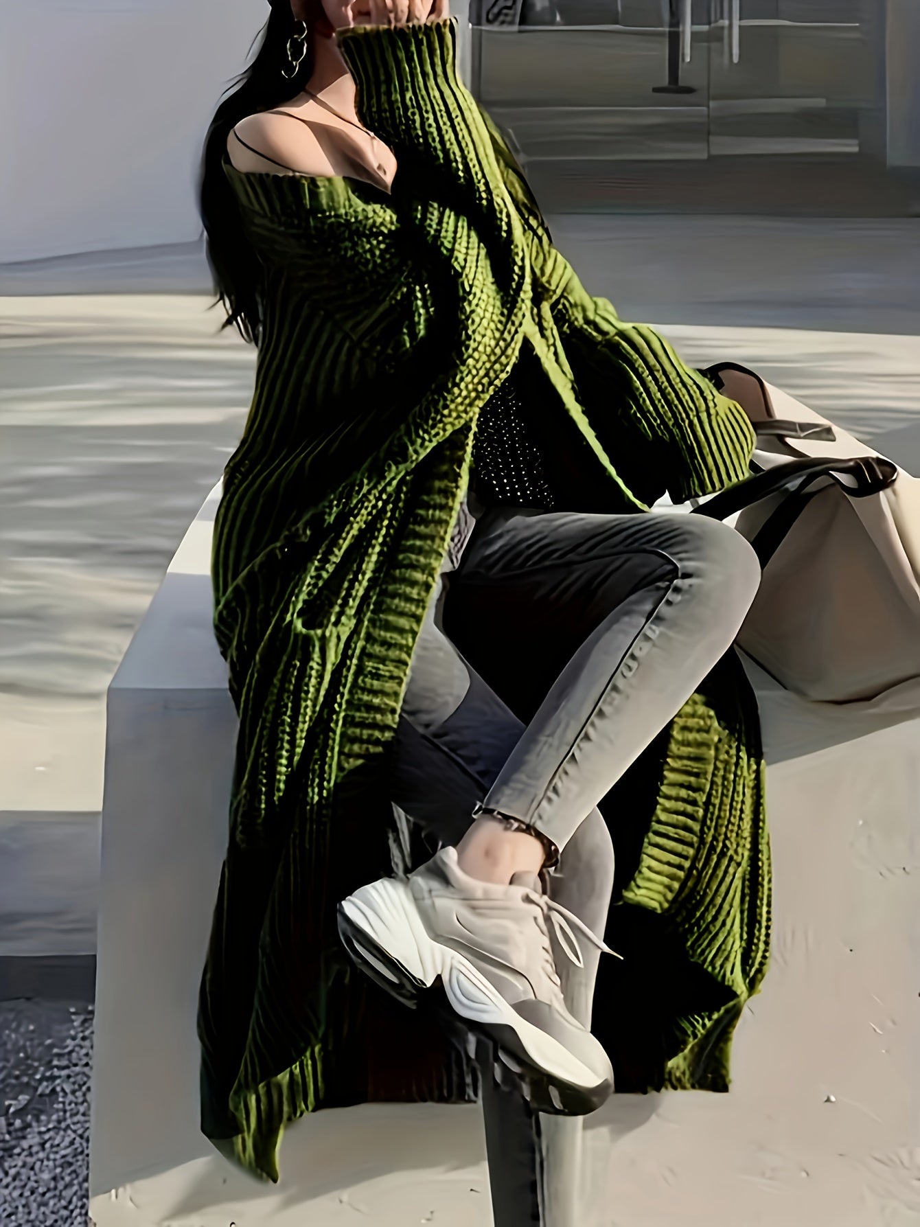 Winter-Perfekt V-Ausschnitt Cardigan mit Überschnittenen Schultern - Weiches Mikro-Elastisches Polyester-Strickgewebe, Langarm, Taschen, Einfarbig, Orientalischer Stil - Perfekt für Lässige Herbst- & Wintermode, Damenbekleidung